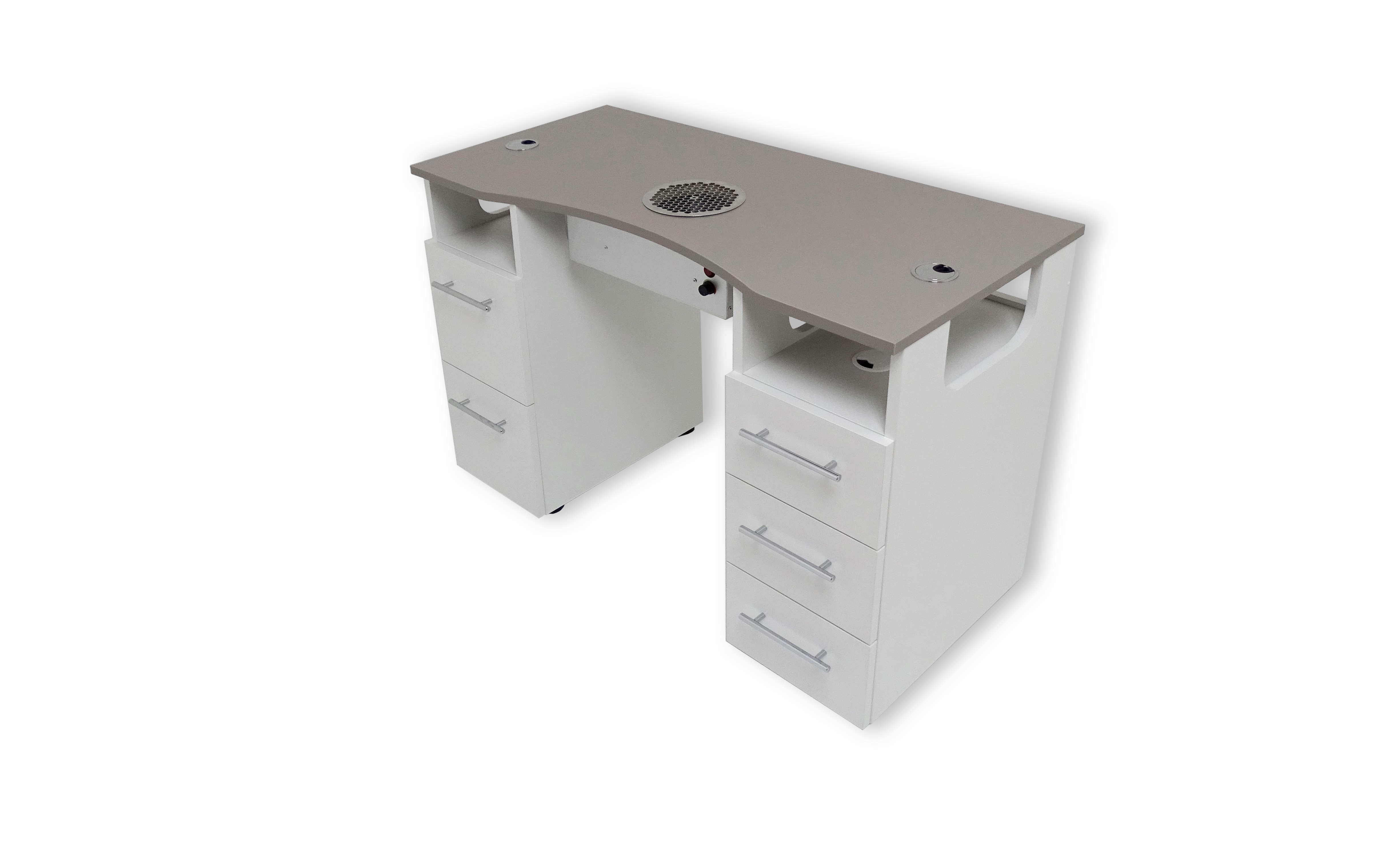 Tischplatte: in ergonomischer Form mit Fräsung Durchmesser 160mm für Absaugung
