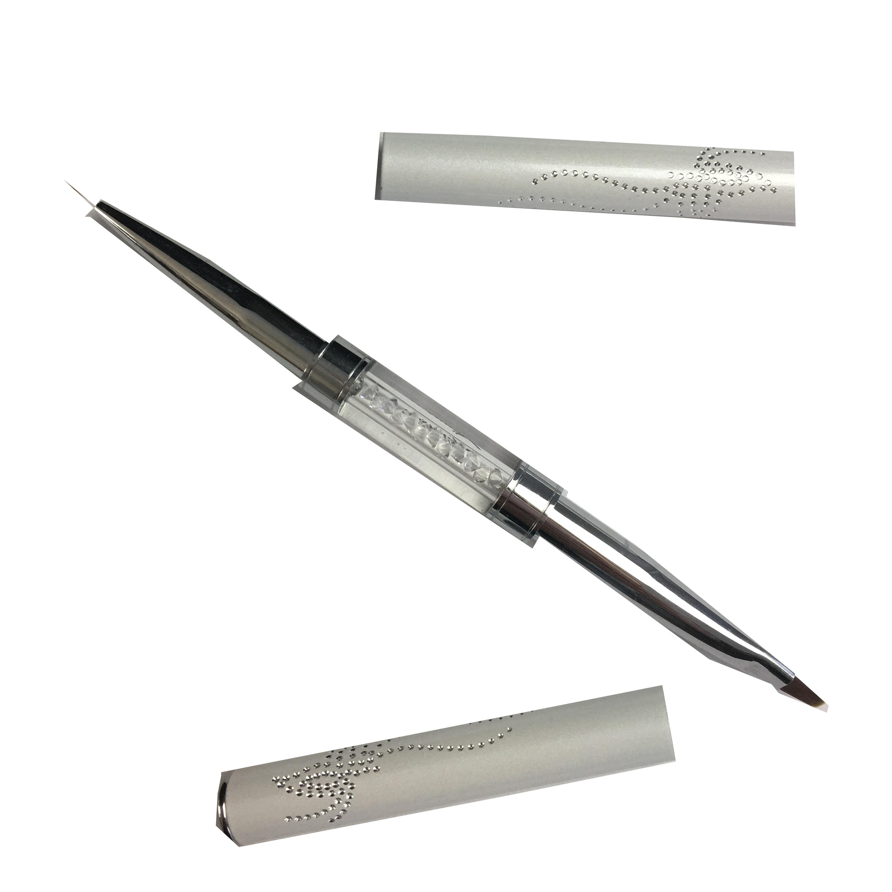 Dieser Nailart Doppelpinsel ist gleich für zwei Nailarttechniken entwickelt worden. Mit dem Fineliner zeichnen Sie die feinsten Linien und Schnörkel, während mit dem Detailer auch flächig gearbeitet werden kann. Beide Seiten sind aus feinem Echt-Haar (Rotmarder) gefertigt. Im Griff sind Strasssteinchen gefüllt und die Kappen sind aufwendiger Blumendeko aufgepeppt. Als Steckpinsel zu verwenden.