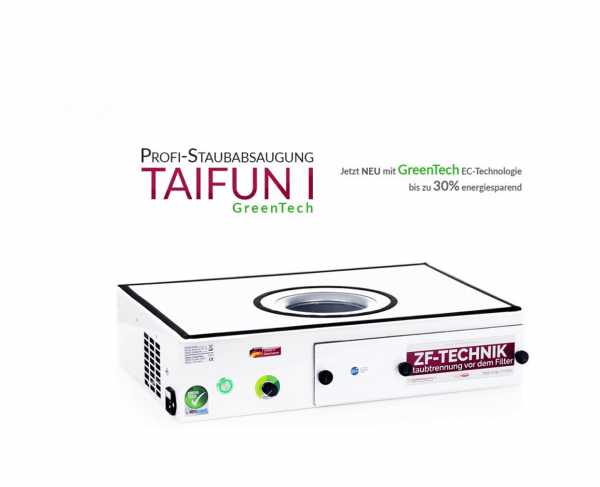 Unsere Profi-Staubabsaugung “TAIFUN 1 GreenTech” ist wieder um einen großen Fortschritt weiter optimiert worden und jetzt mit stromsparender und effizienter GreenTech EC-Technologie ausgestattet. Zudem wird nochmals eine Leistungssteigerung von knapp 20 % bei gleichzeitig bis zu 30 % geringerem Energieverbrauch gegenüber dem Vorgängermodell erreicht. ✓